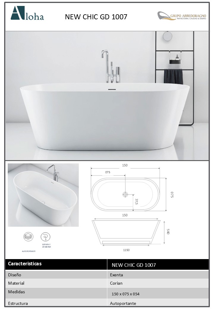 Bañeras Aloha Exenta CHIC CORIAN 150x075x054