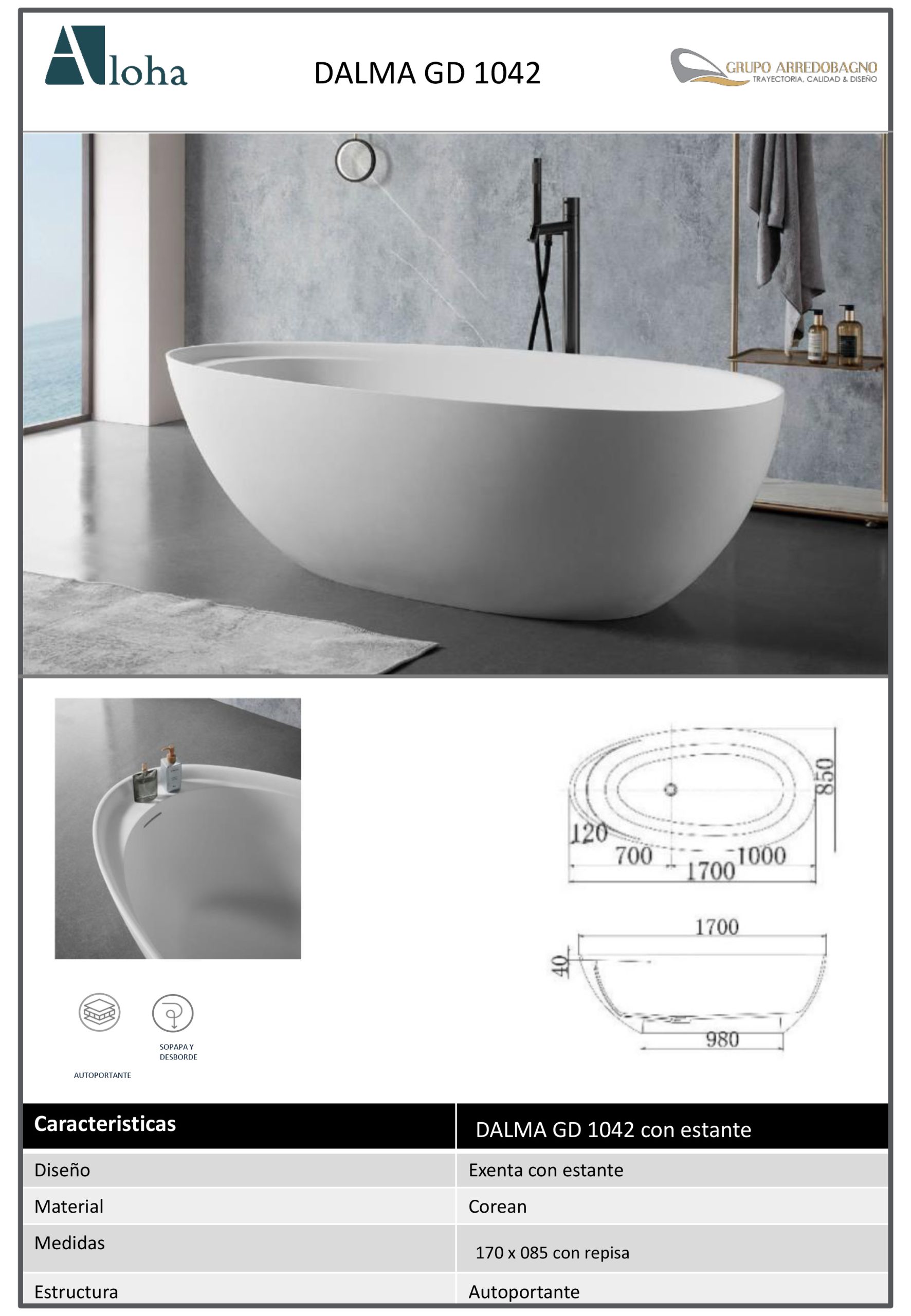 Bañeras Aloha Exenta Modelo DALMA 170x085x053