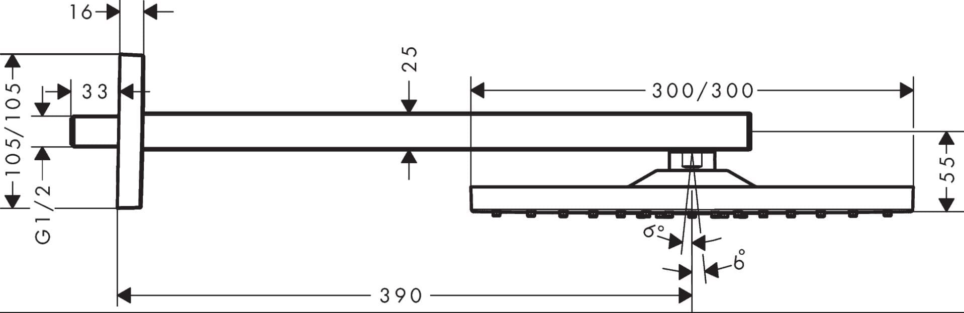 tamaño de la ducha 300 x 300 mm